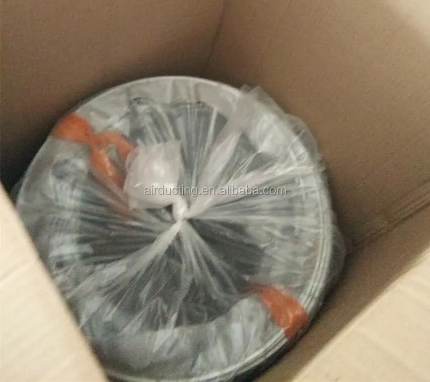 1.Made of High strength glass fiber cloth and Supported by Iron spiral wire, in order to protect the duct from being tear.