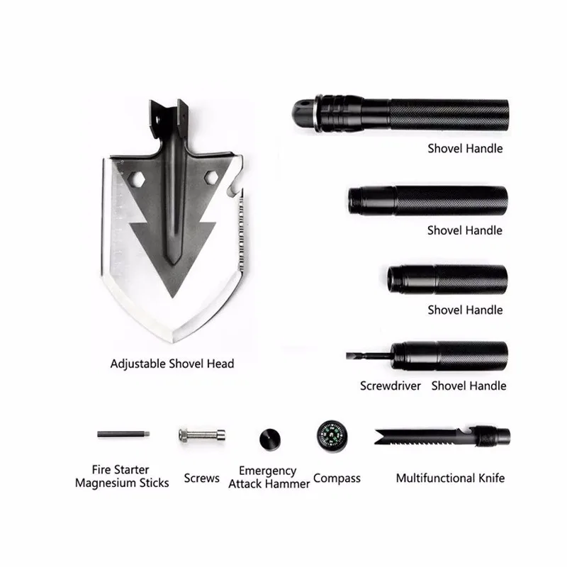Items | Compass Firestone Screwdriver Emergency hanmmer Mutifunctional Knife Shovel head |