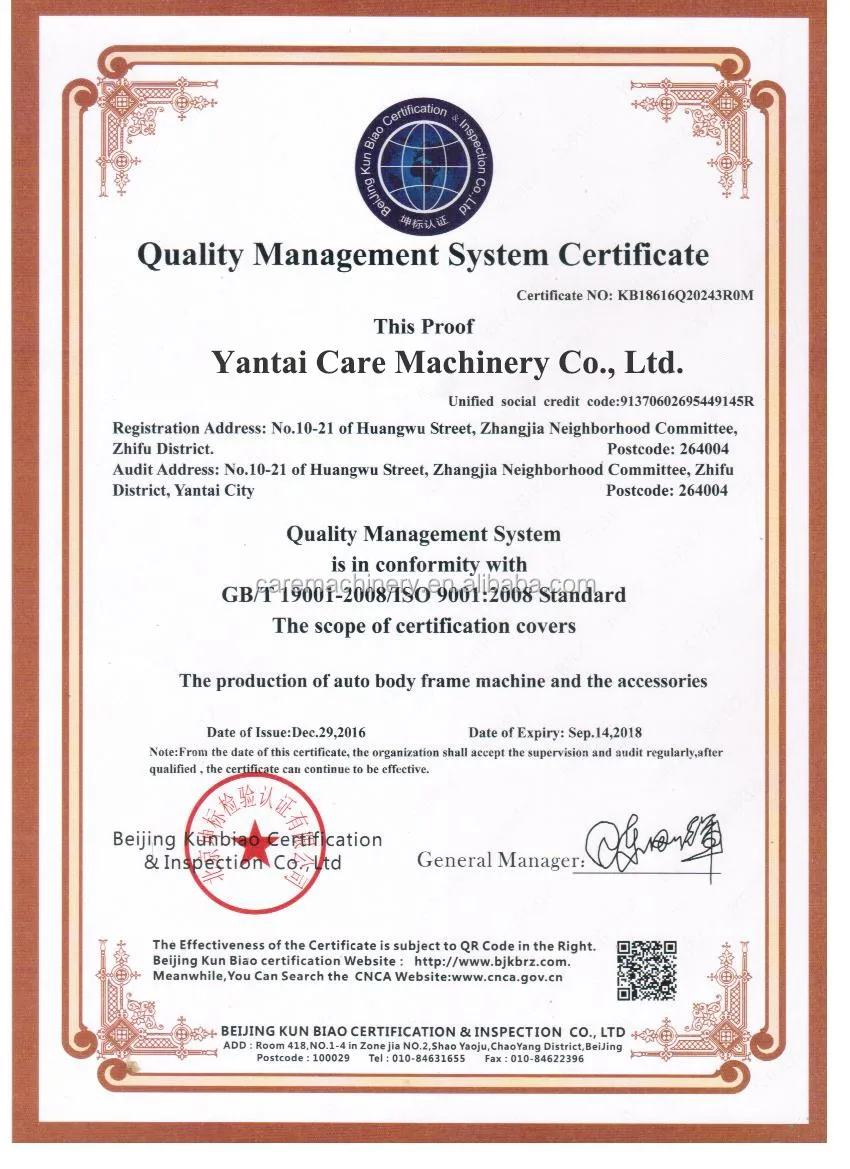 2) Automatic arm restraints, Lifting arm automatically engages when lift is raised and disengaged when lift lowered to the ground.1. All the machines will be full tested before shipment;