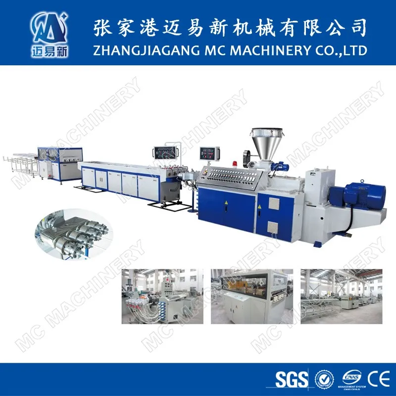 16mm-32mm PVC Electric Conduit Four Pipe Production Extruder Making Machine Making Machine is mainly suitable for producing PVC pipe with diameter 16mm-32mm,electric use, cable laying,with different pressure level and pipe thickness.