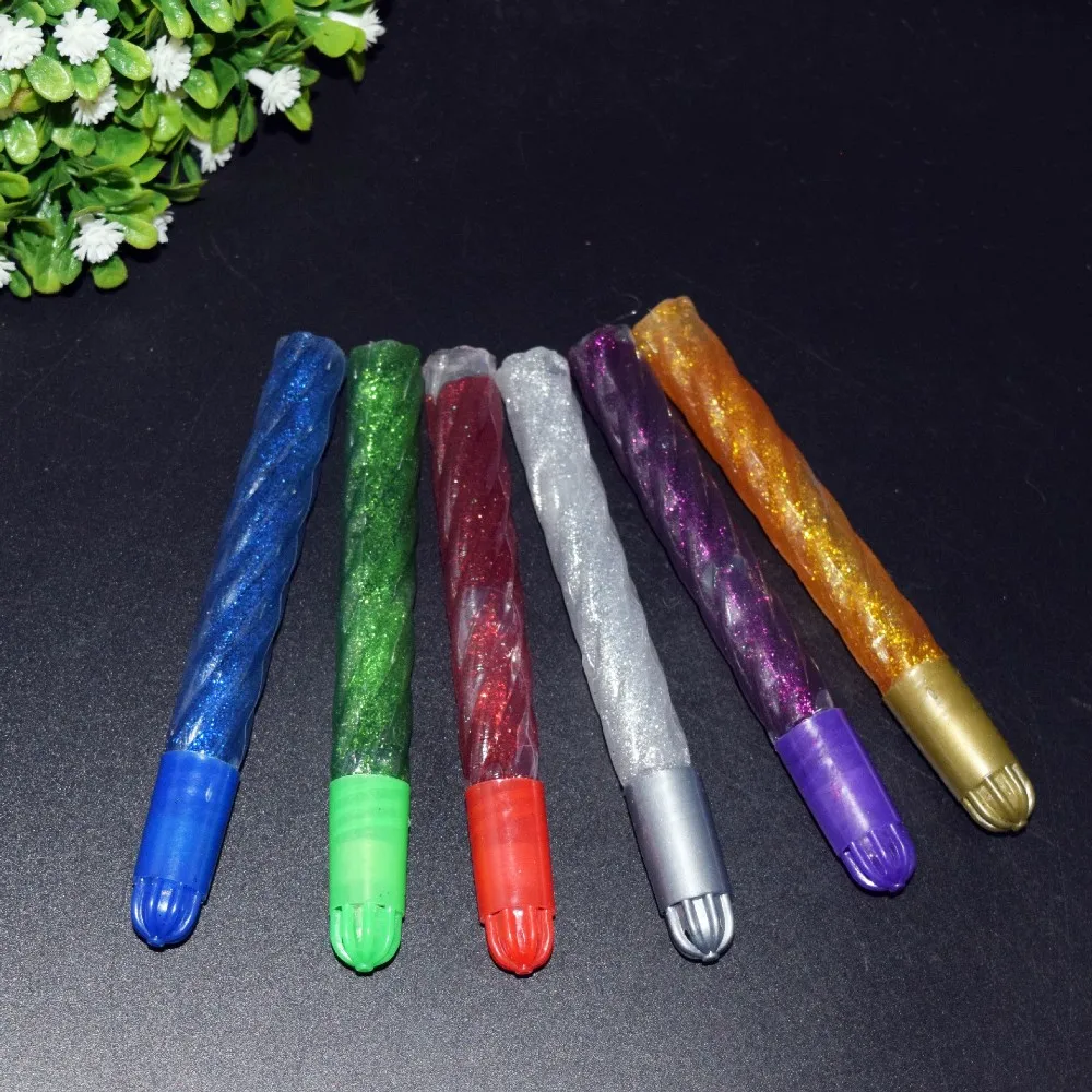 Pen shaped glittery tubes offer easy squeezing giving a bubble-free smoothness.