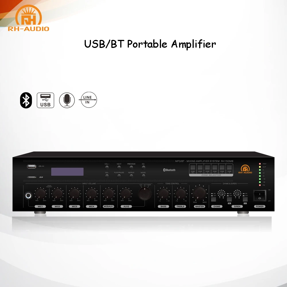 The mixer amplifiers have features of built-in MP3 player with SD & USB slot for connecting
