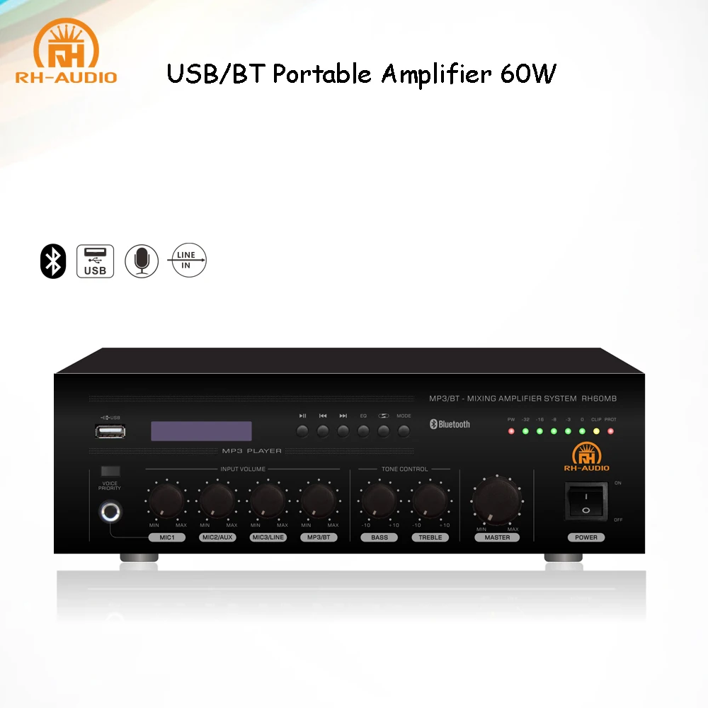 RH8 Series MP3 Mixer Amplifier are distinguished with front handle from RH28 Series but same function.