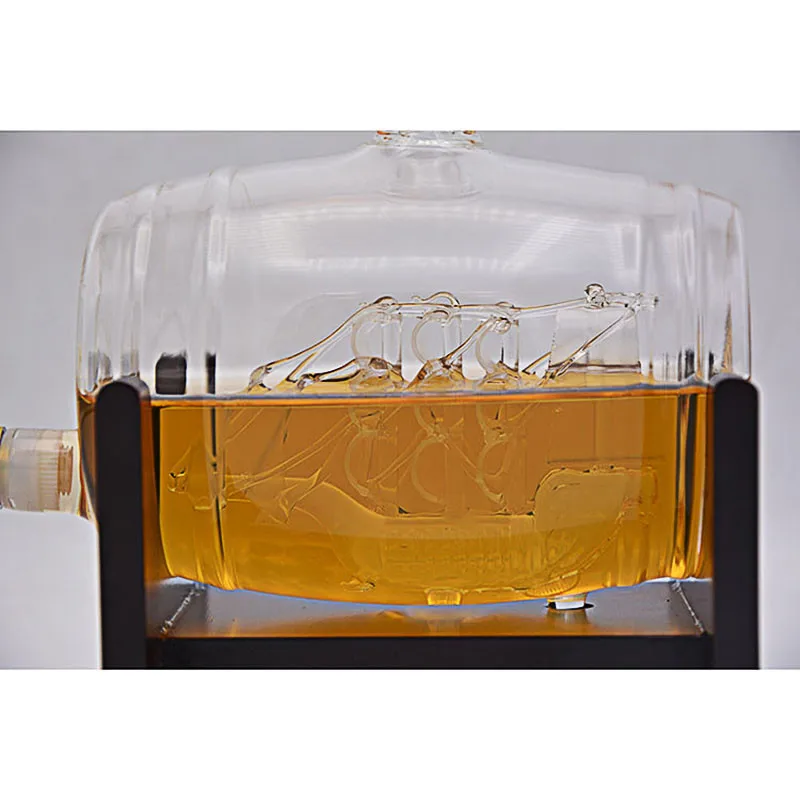 Features: hand blown barrel decanter with an intricate hard crafted glass ship inside.pour your favourie wine in the beautiful