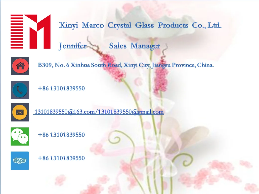 Xinyi Marco Crystal Glass Products Co.,Ltd is a cosmetic bottle manufacturer,which estiblished in 2009,focusing on cosmetic product packaging manufacturing sales and service system.specialing in crystal glass bottle for perfume glass bottle, cosmetics glass bottles and services. Our products are sold to Europe, America, and Southeast Asia.With high-level technology, advanced printing equipment, and outstanding manufacture talented person ,with a modern factory located in Xinyi automated production equipment and independent production base. We have many talents , including the field of high-quality development ,manufacturing, and sales. Until now we have office 15 staffs, and production line 100 workers. With the idea of WE CARE (Continuous improvement, Attention to any client needs, Responsibility to objectives, Elevate our skills and talents ), Marco is looking forward to walking hand in hand with you, keeping pace with the times, innovating packaging environment, giving the win-win flags and making new heights! Let us do what we do best; the less time you spend ordering supplies, the more you can spend growing your business.