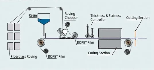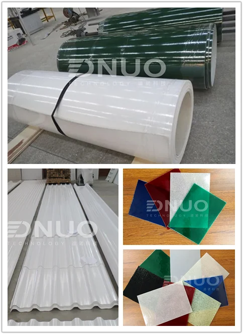 This production line can produce lighting sheet, color sheet, common flat sheet and gelcoat sheet.