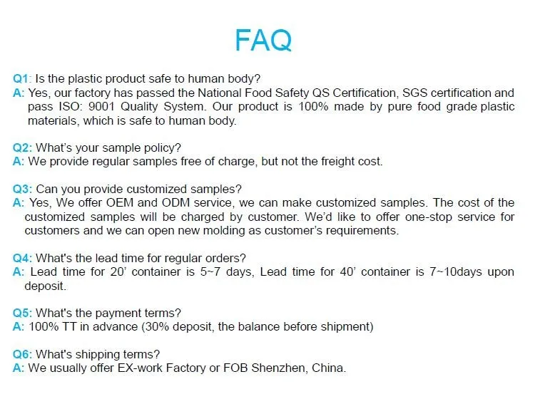PP material with food grade, clean, safe, even texture, not smelly, nontoxic