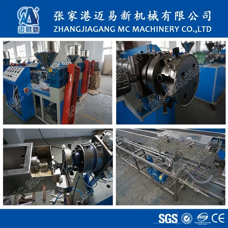 SJ30 Single screw extruder (one color,two color,three color)---Straw Mold head---Vacuum calibration and water cooling tank---Traction and Cutting machine