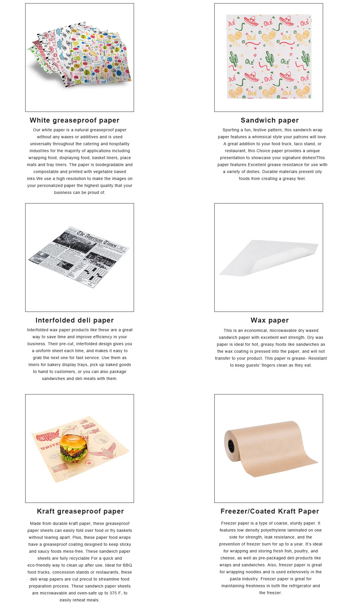 Decorative and sanitary; Dry waxed paper just like you've seen in your favorite burger joint,now available for your picnics and home entertaining. | ||||||||