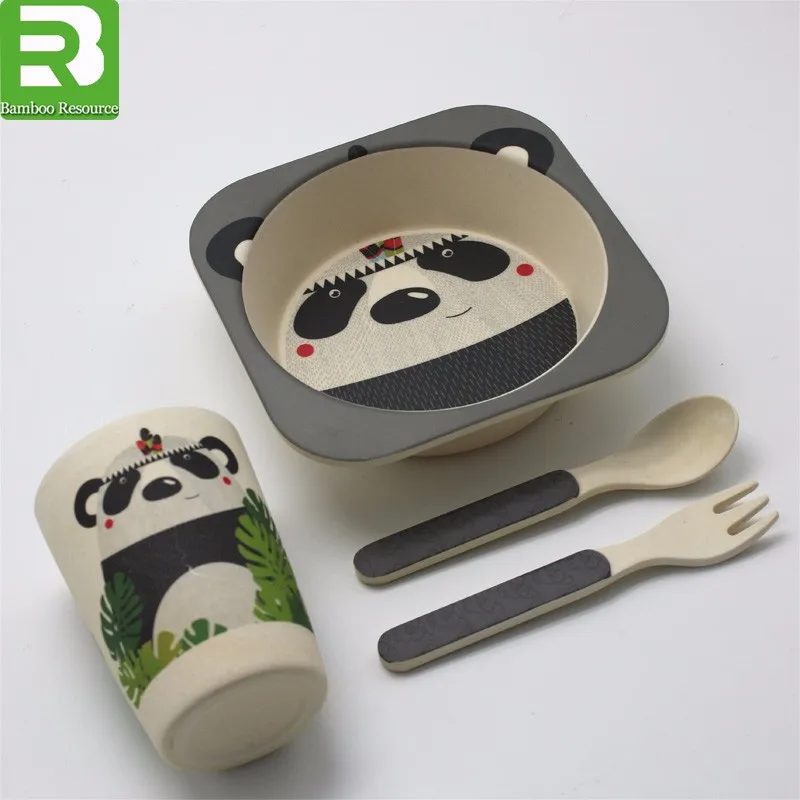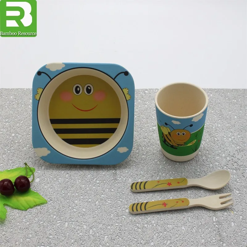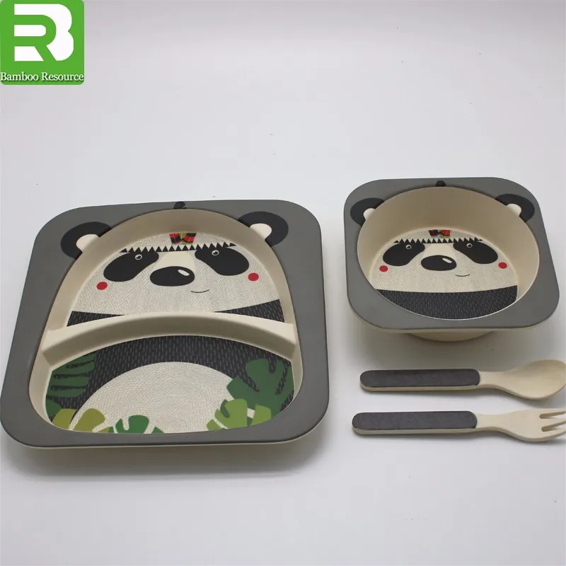 3 compartment children dinner use biodegradable plastic plate with fork and spoon