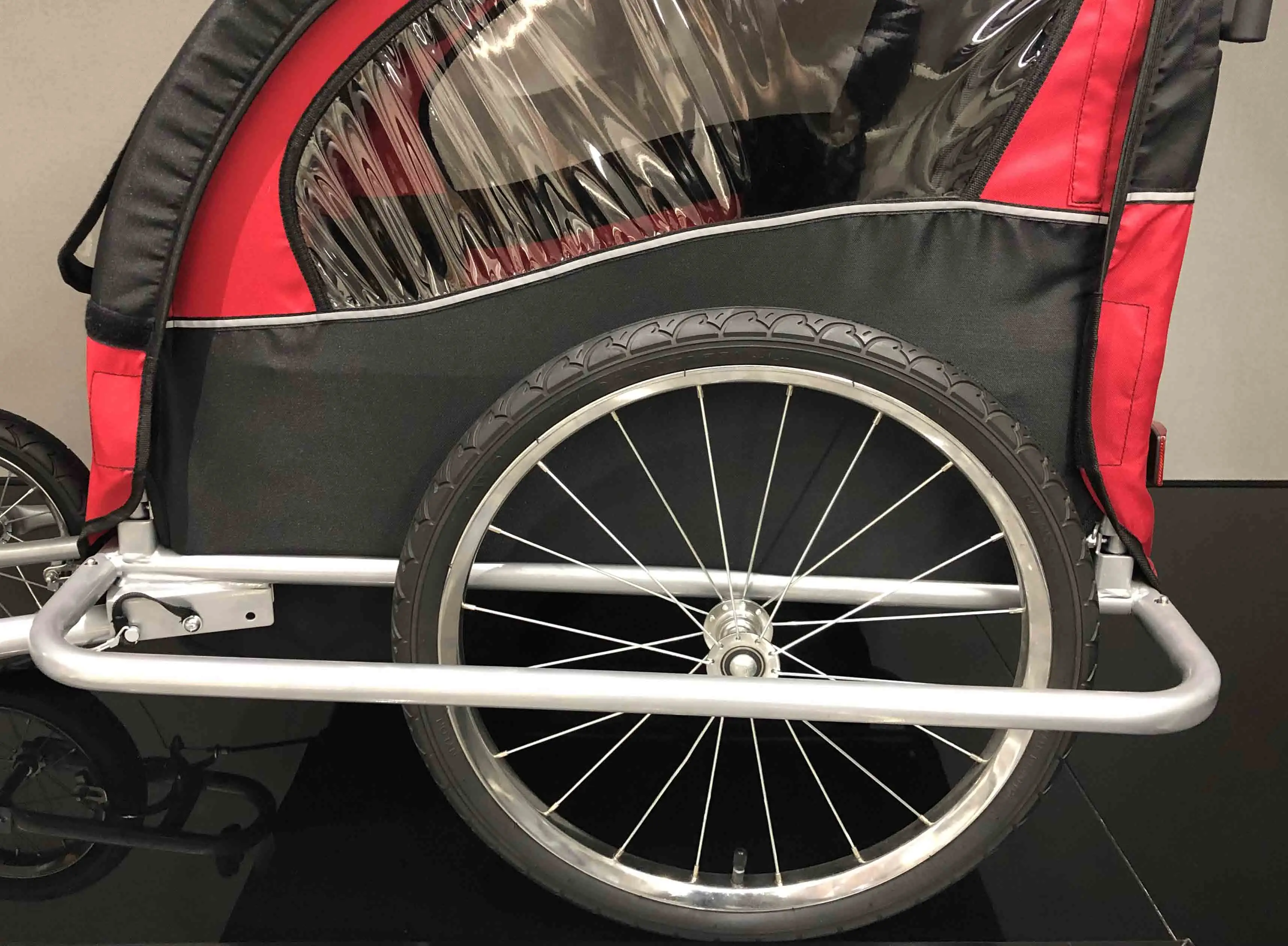1. Streamline body, classic color matching; huge space and double seat design. 2. With rear stopping handbrake 3. Roomy storage space with big window design, allowing children to better observe outer world. 4. Double seat safety belt provides overall protection to children's shoulder, waist and crotch parts 5. Three types of trailing hitches for wide application 6. Suitable age range: 6Months to 7years old; Max weight: 26kgs(single) and 40kgs(double)
