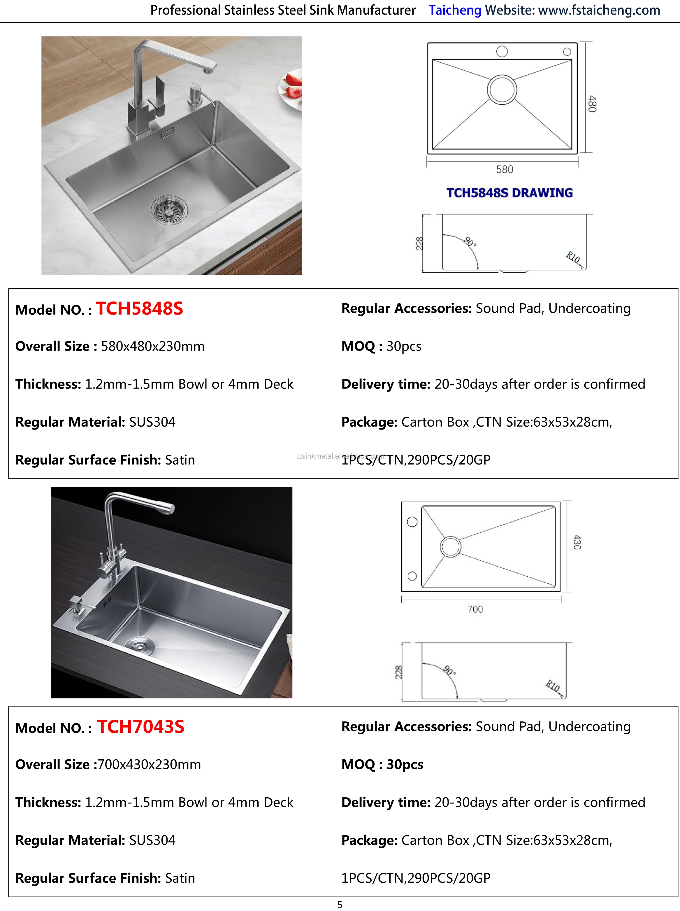 5.Good Quality: We have very strict quality control system for stainless steel sinks