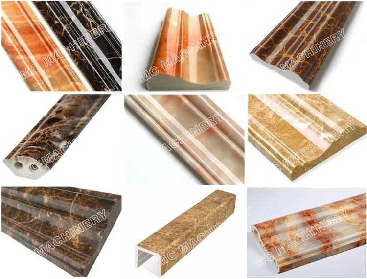 PVC Stone Artificial Marble Making Extruder Machine is mainly used for making PVC marble with different section shape and height. the surface of marble can be treated by hot stamping, which can make marble with good decoration effect.