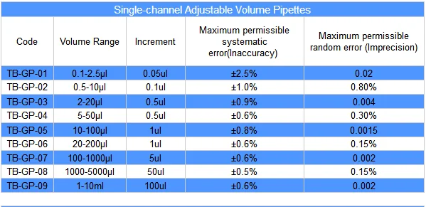 - volume range of 0.1ul to 5000ul
