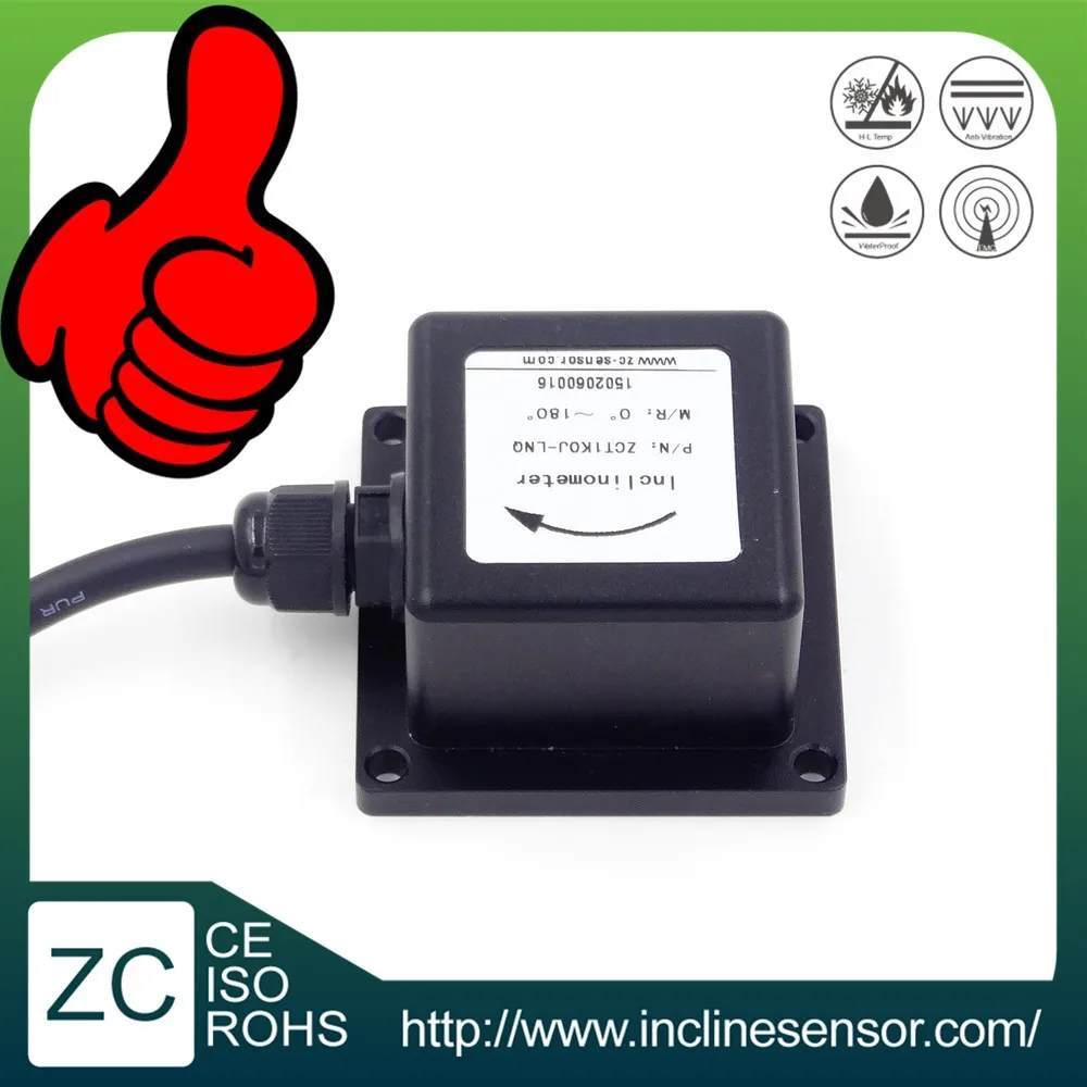 ZCT1K0J-LNQ is a low cost one axis tilt sensor which is researched and produced by Shanghai Zhichuan. It is single-axis structure, vertical installation. Internal sensor adopts MEMSIC devices, micro-processor control technology and digital design. Combined with appropriate ASIC circuit, finally output analogy voltage.