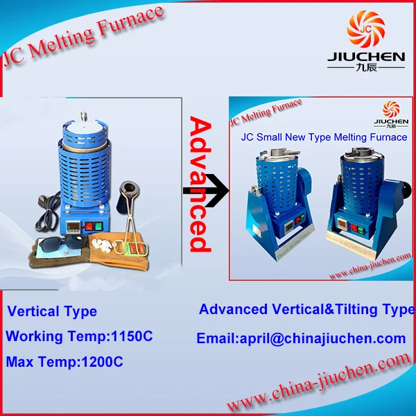 JC Tilting 2KG Smelting Machine Cast Bronze Scrap Melting Furnace is the advanced model of vertical small gold furnace.The outstanding adavantage is no need to take out the crucible which makes melting safe and convenient.It is widely used in melting gold,copper, silver and other noble metals, metallurgy, petroleum , chemical , Laboratory, heat-treatment with melting temperature less than 1150°C/2012F.