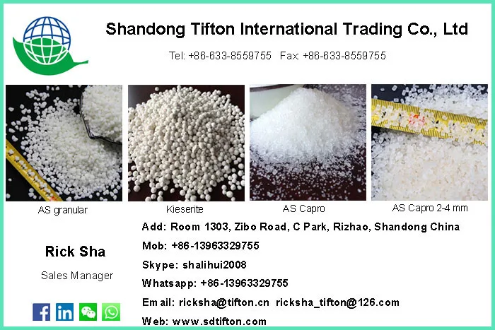 Tifton interntional is professional trading company of exporting chemical product and fertilizers and manufacturers of ammonium sulphate.Our produces have been exported to Asia,Americas,Eurpe,India,Africa,and South Americas more than 20 countries and regions.We will always uphold our corpprate mission'fidelity,efficiency and innvation'provide customers with satisfactoryfrosuct and services.