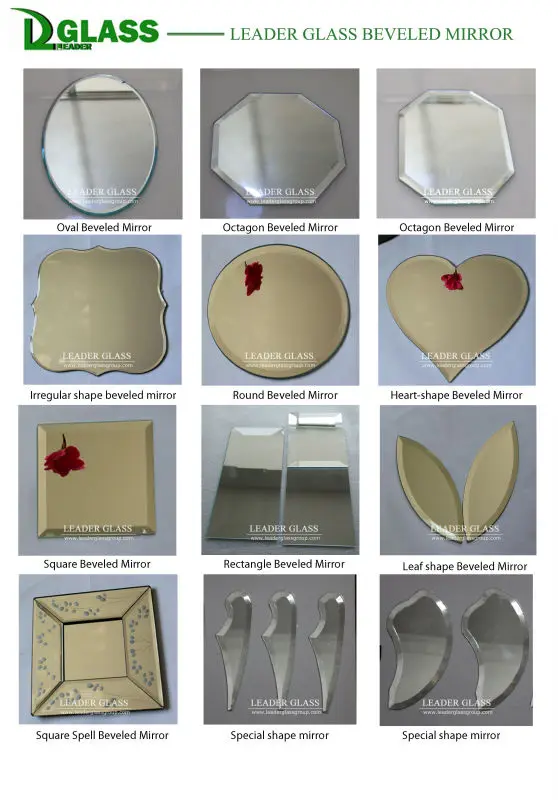 Beveled Mirror is produced by high quality silver mirror, aluminum mirror, copper free silver mirror and tinted mirror . Mirror sheet can be cut into various size, and mirror edge can be deep processed by beveled, polishing, roughly grinding. Beveled edge, flat polished edge, pencil polished edge, seamed edge (swiped edge), mitered edge and other popular edge processing products are all available. There are many figures available, such as rectangle, oval, round, dome, wave, etc. Irregular shape also can be made as customers' design and creation