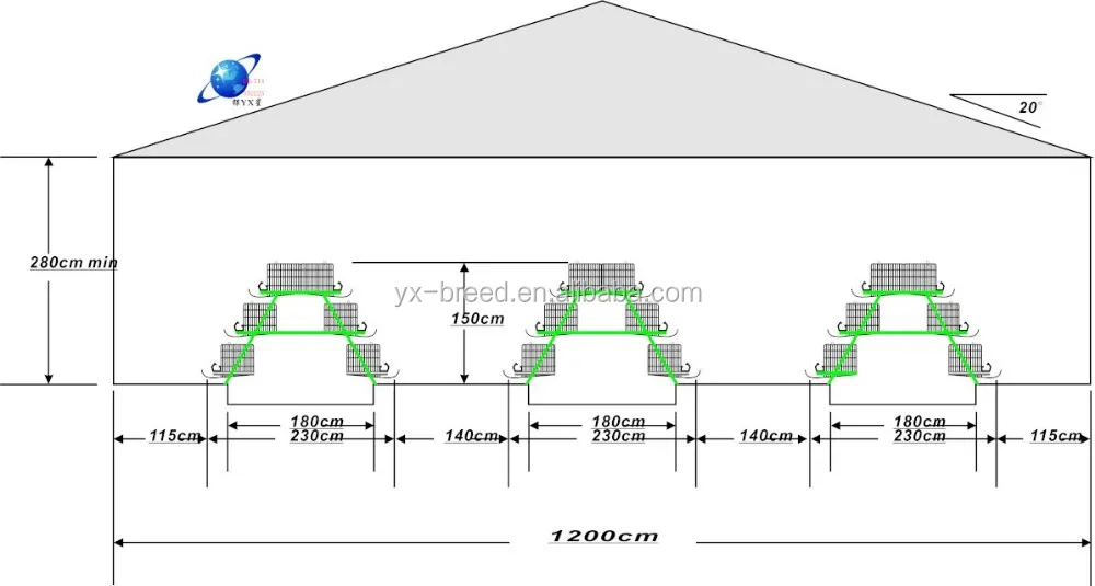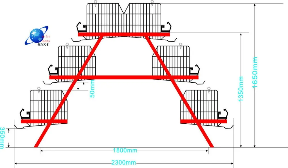 A type broiler | 4 tiers | 183*265*150cm/set | 61*50*35cm/cage | 168 broiler |