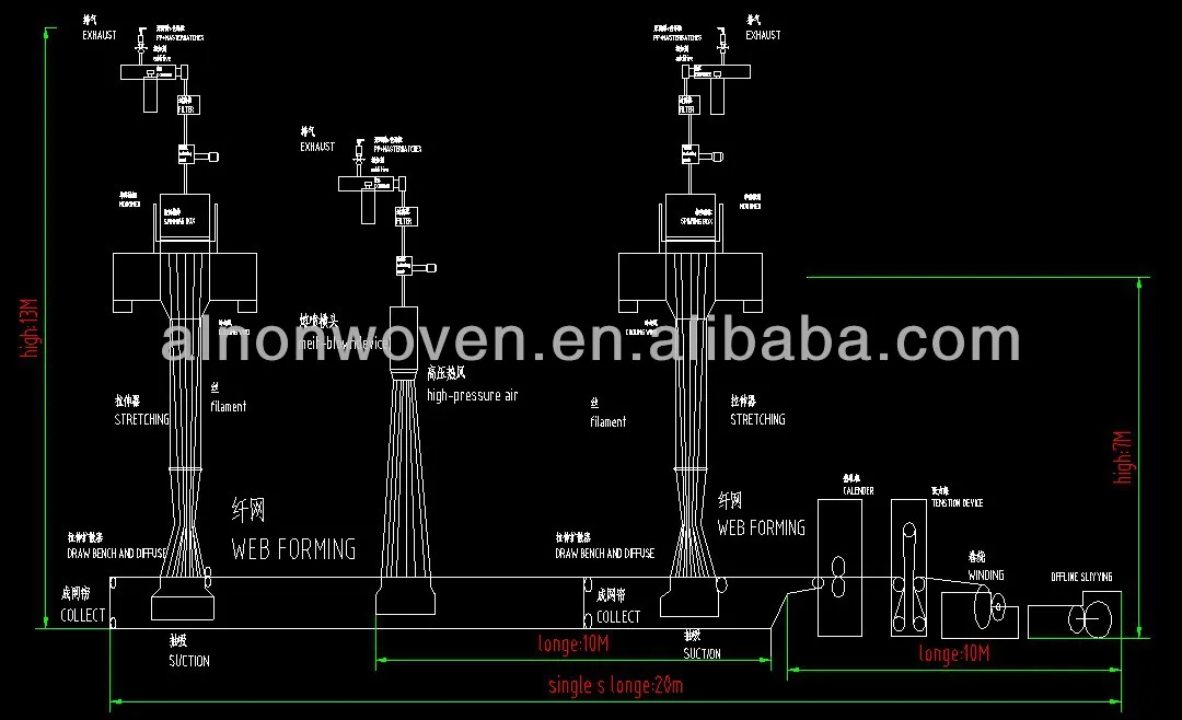 Flow Diagram:SMS PP Non woven Fabric Making Machine with High Speed