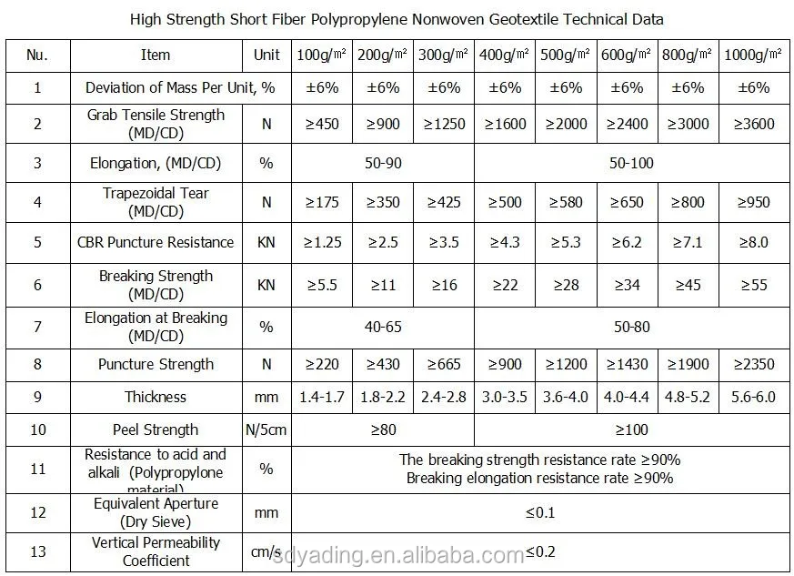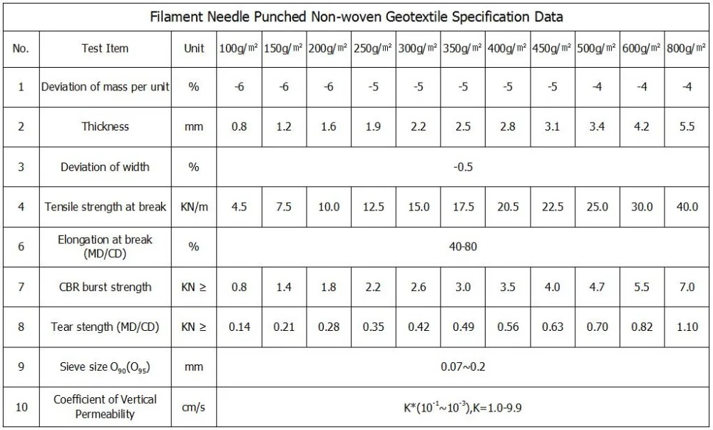 1. Tensile and tearing resistance, bursting resistance, resistance to puncture, such as high mechanical strength, is equally grams weighs more than doubling of staple fiber geotextile, especially bursting resistance, strength reached more than 2200 Newton, in the stone slope protection, can effectively prevent irregular stones on the impact of the cloth;