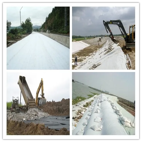 2.Reinforcement of the soft foundation:applied on the soft foundation of the unpaved road,the airport path,railroad,the landfill,the stadium,etc prevent the geomembrane to be punctured by the gavel.