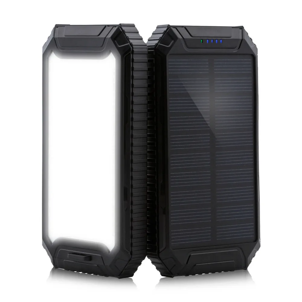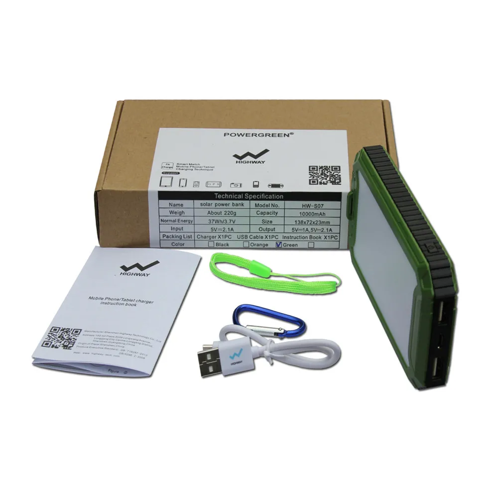 ● 10000mAh lithium polymer battery solar power bank, charging via sunlight or USB cable with adapter