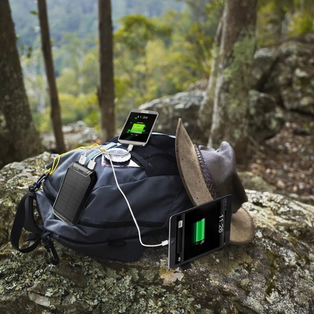 ● 2W monocrystalline solar panel, 2.1A current output allows for quick simultaneous charging of two devices