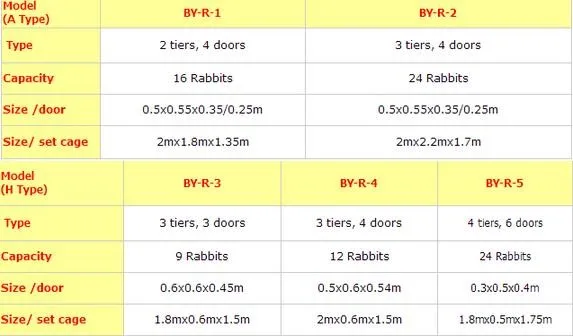 Common specification of rabbit cage