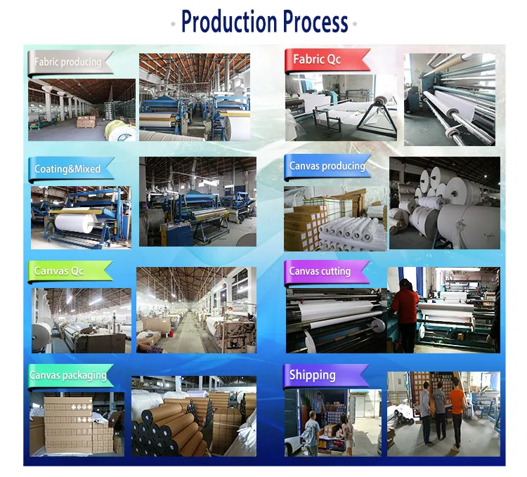 The core competition advantages are consistently quality and innovation. According to the market demand, we would develop some brand new models to meet the marketplace’s requirements. We could adjust property of production on the basis of customer requirements. By far, we have more than 30 categories of printing materials, including polyester canvas, cotton canvas and poly-cotton canvas. Those applied to Eco-solvent ink, Latex, UV ,pigment ink,dye ink..
