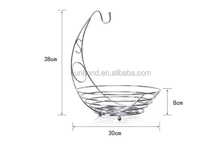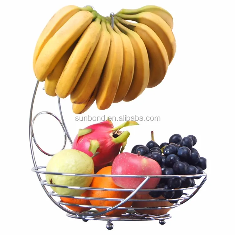 Kitchen Chrome Metal Wire Fruit Basket With Banana Holder