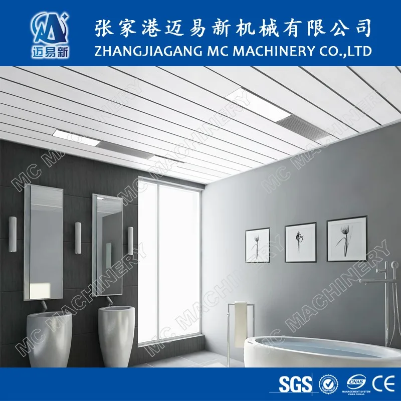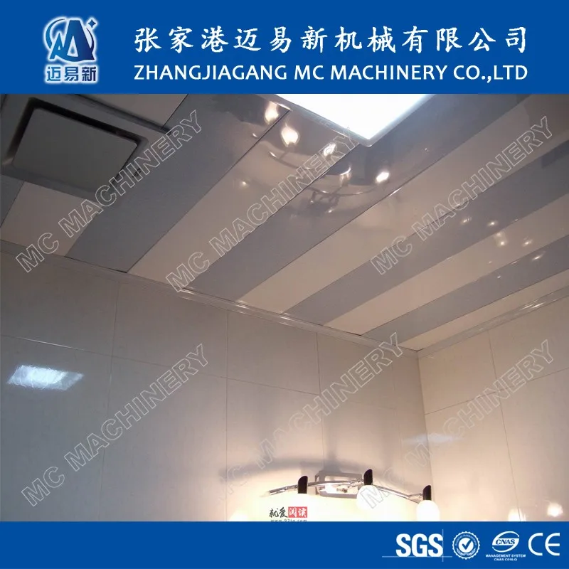 PVC Ceiling Panel Making Machine/Extrusion Machine/Production Line is mainly used for making PVC plastic ceiling panel with different section shape and height. the surface of PVC ceiling panel can be treated by printing & coated with glossy oil, or by heat transfer printing, or by lamination, which can make good decoration effect for kitchen,toilet,balcony and so on.