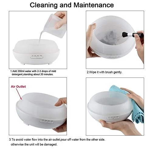 Advanced Ultrasonic Technology: The aroma diffuser uses electronic frequencies to create vibrations at a frequency of 2.4 millions times per second breaks water and essential oils into extremely fine micro-particles without using heat.