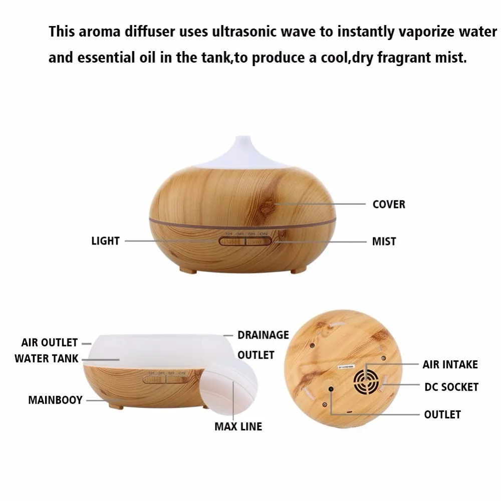 AROMA DIFFUSER Name | SOICARE 300ml wood grain ultrasonic oil diffuser base aromatherapy humidifier | |