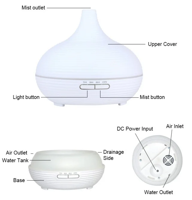 FUNCTIONS | Aromatherapy Diffuser, Humidifier, Air Purifier, Ionizer, Night Light | |