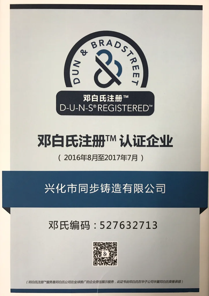 Passed the ISO9001:2008 quality system authentication and Dun & Bradstreet authentication.