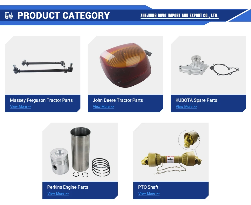 A2:We have over 11,000 items spare parts which is suitable for tractors and engines including John and Deere, Massey Ferguson, Kubota,Ford New Holland, Case