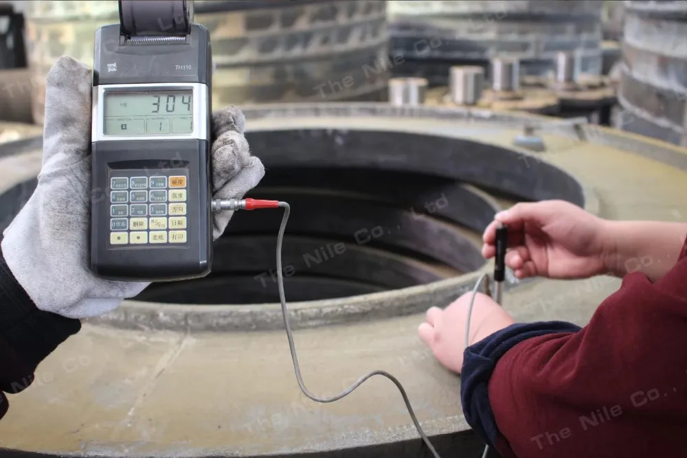 We use the device to test the hardness of the roller; the hardness can reach more than 300HB, which ensures high capacity of our wet pan mill (chilean mill).