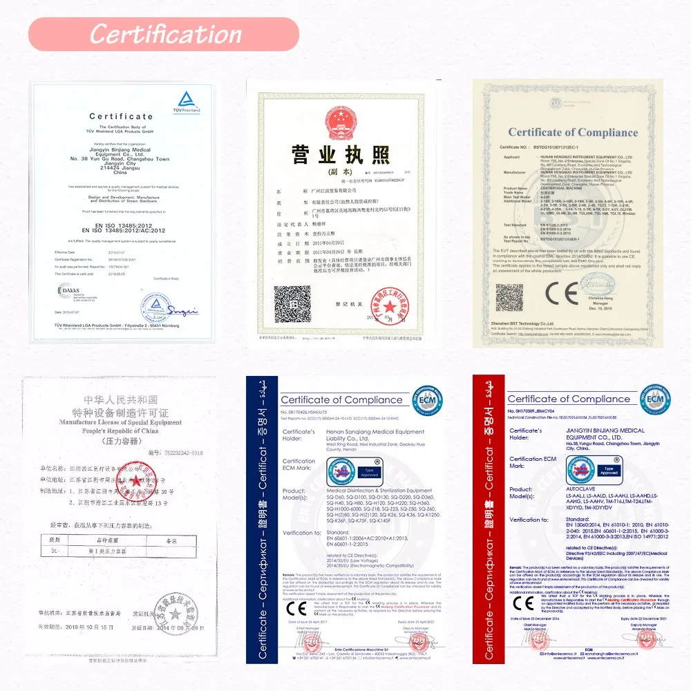 Our autoclave has CE,ISO 9001,and ISO 13485 certificate.