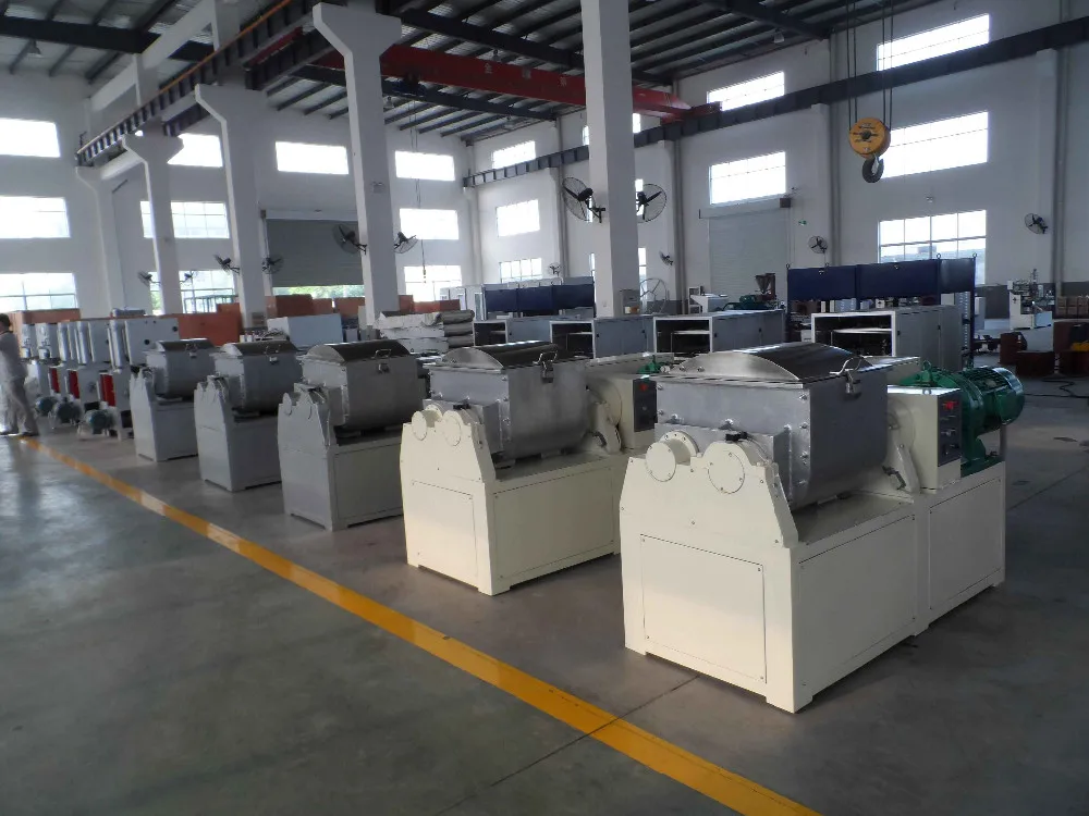 The pulling roller pull the sugar strip and cut one size.