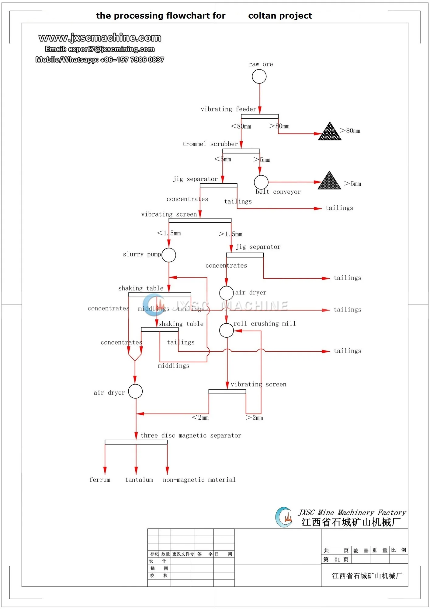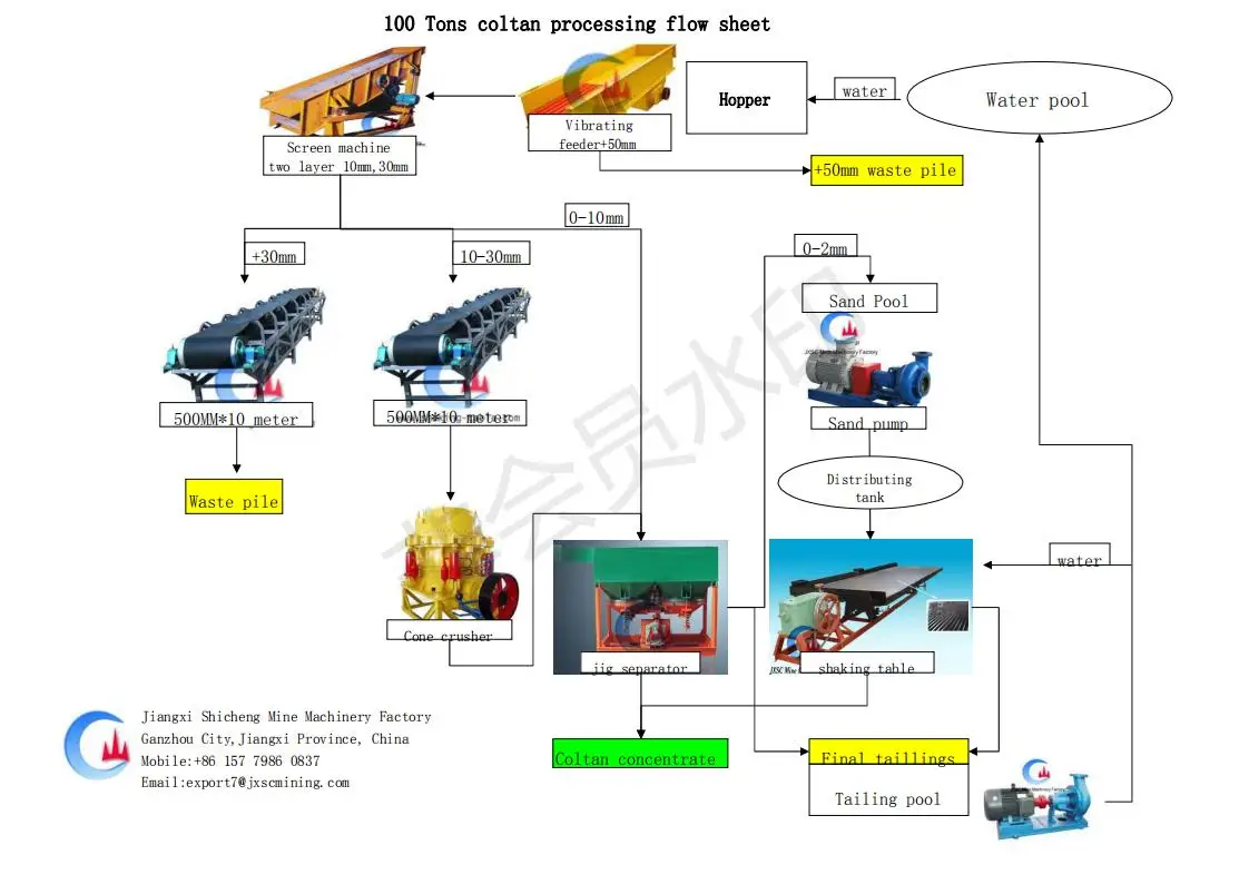 1) JXSC designed flowchart and plant layout drawing based on the coltan mine site conditions.