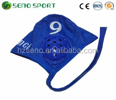The Water Polo Caps are made out of a durable polyester and PBT material that comfortably conforms to any head shape. Each Water Polo Cap is secured to the head with a nylon tie and protects the ears with strong plastic ear guards. The Water Polo Caps sold in sets, numbered 1-13. Sets are available in white or navy team colors and each set comes with 2 red goalie caps. Available in Adult and Children sizes.