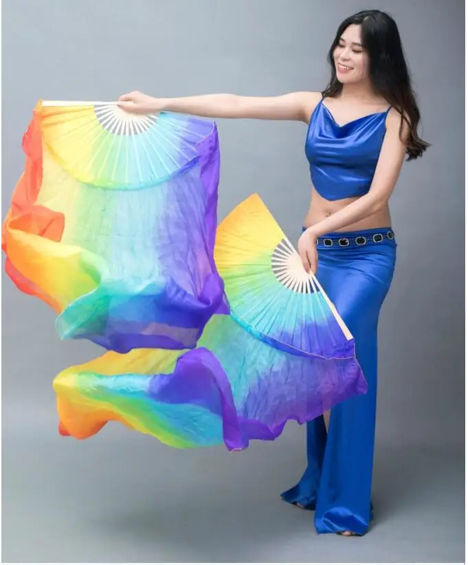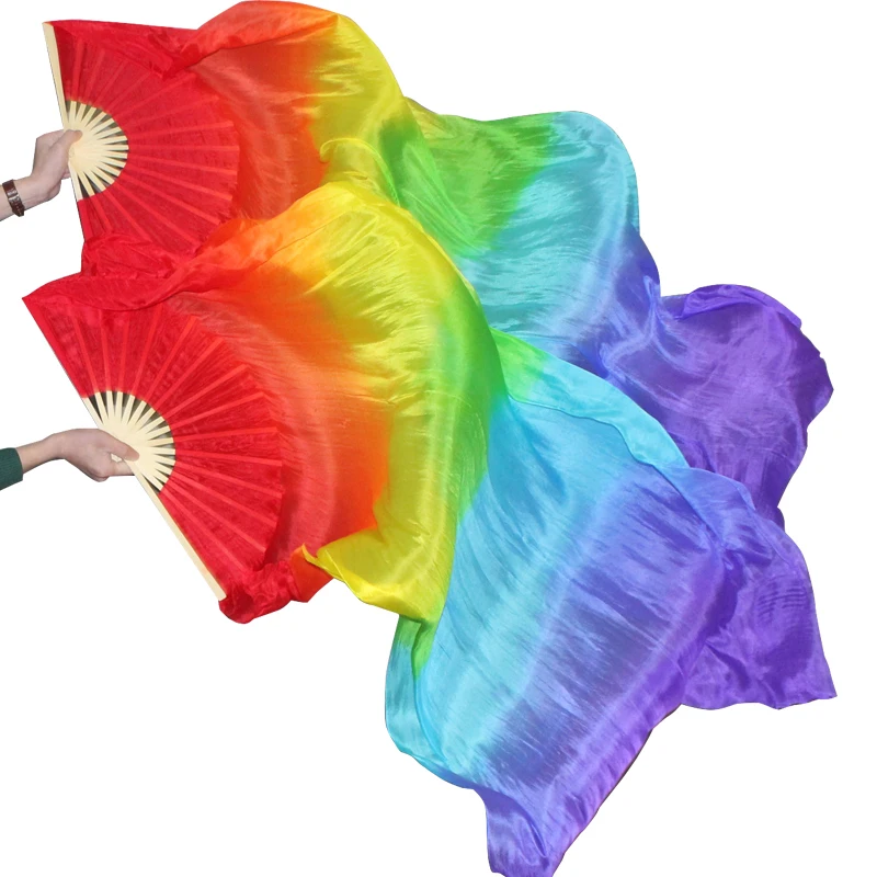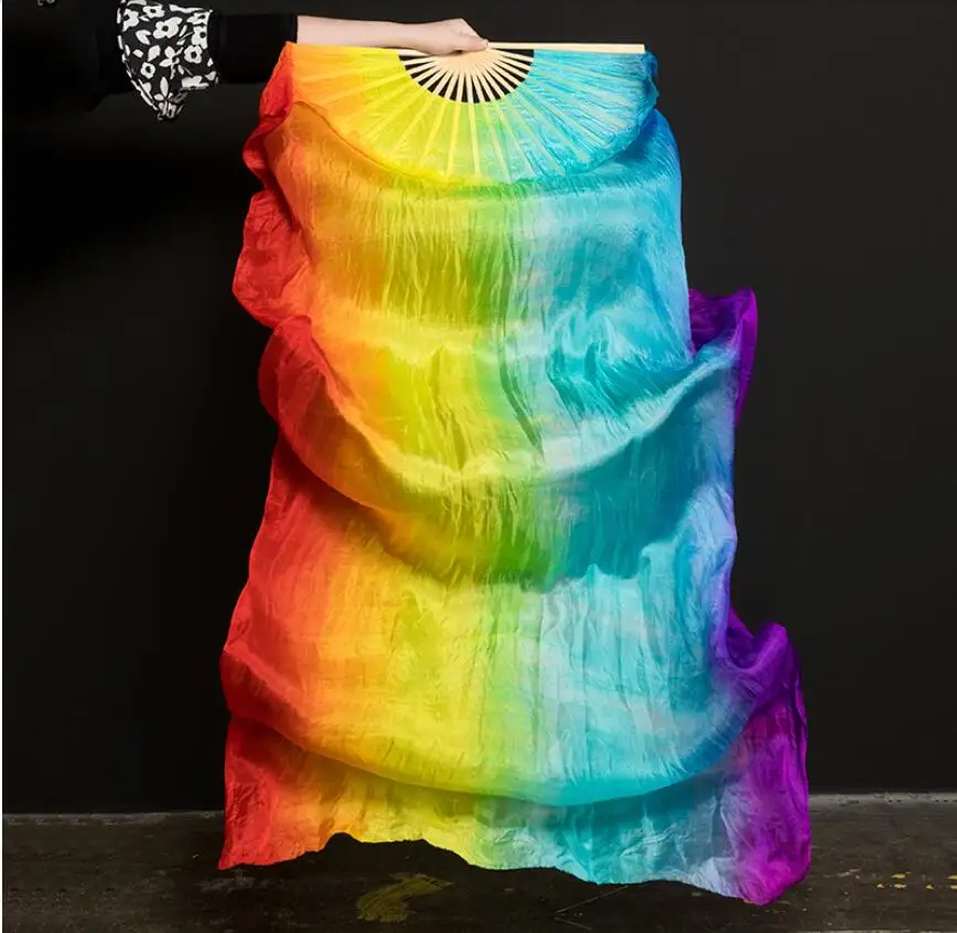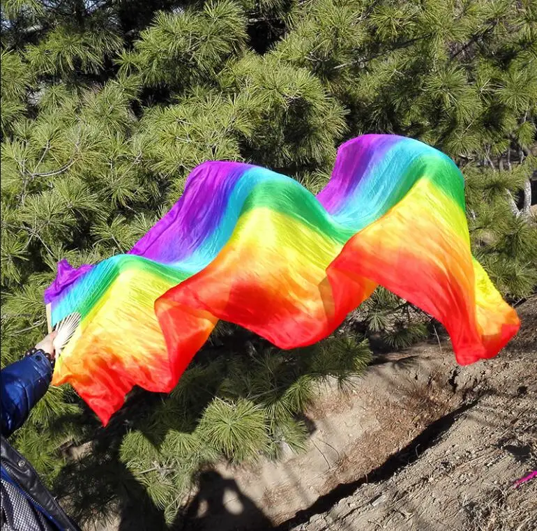 Product Name: 1.8M Hand Dyeing Lengthways 7color Rainbow Belly Dance Dancing Long Silk Fans Veils | Products Name: | |||||||||