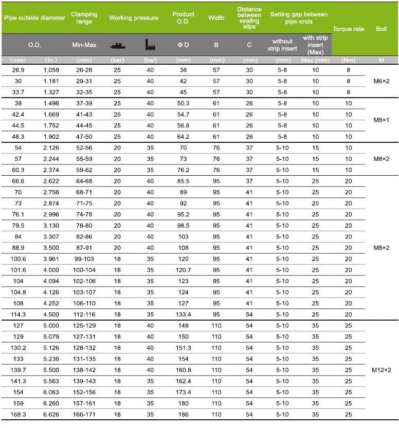 GRIP-R Pipe Repair Clamp Technical Parameter