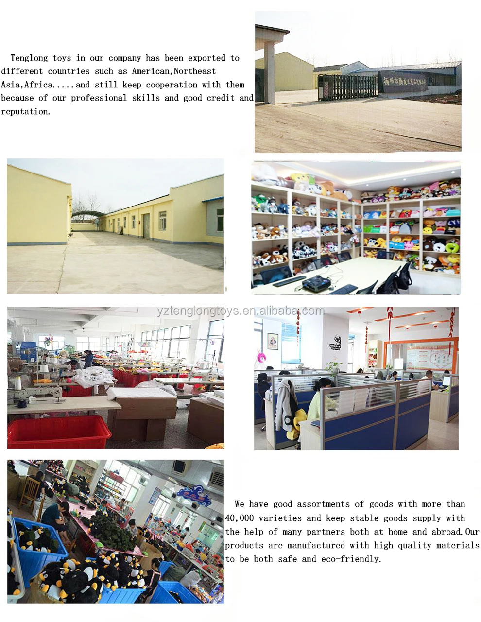 A:We are not only a trade company but also a manufacturer, we have been in the plush field for more than 14 years. now we have more than 100 staffs.