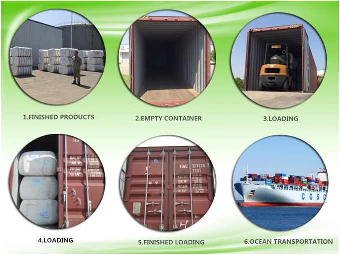 | 11.Packing Method | PP Woven Bag, about 220-250KGS/ bales 1.1M*0.9M*0.7M (0.7CBM) 1x20GP: around 8 Tons, 1x40HQ: 22 Tons |