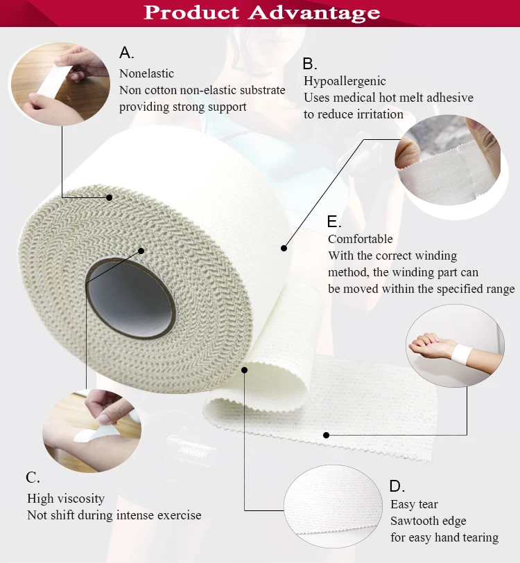 | Product name | Custom cotton / rayon sports medical adhesive rigid strapping Zinc oxide athletic tape | ||