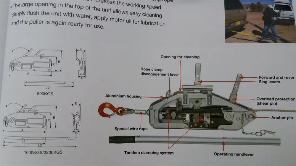 0.8t Tirfor Wire Rope Manual Hand Pull Winch