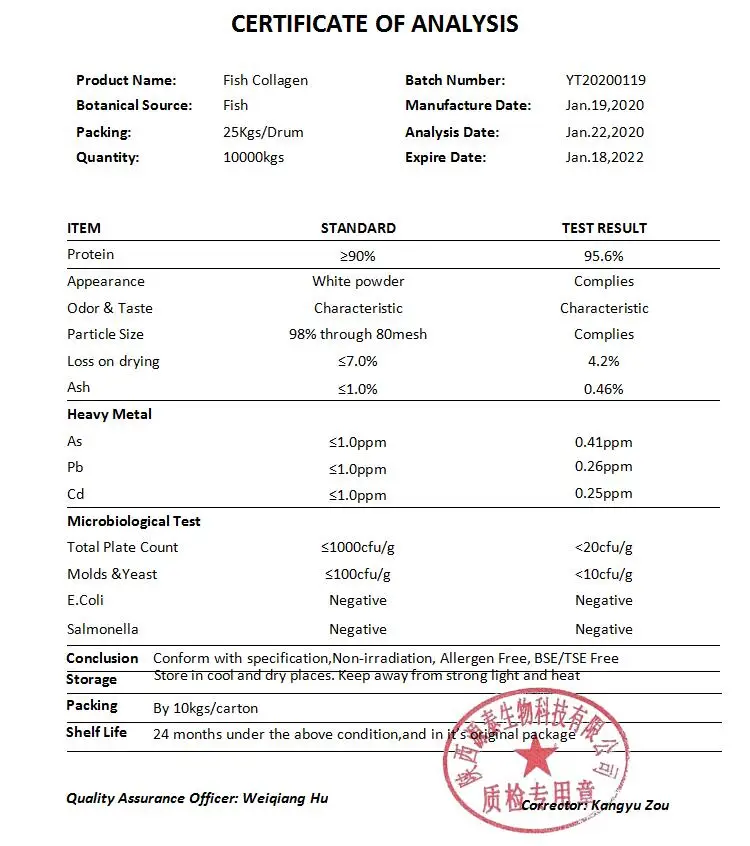 | Part used | Fish skin or scale | Grade | Food&Cosmetic Grade |