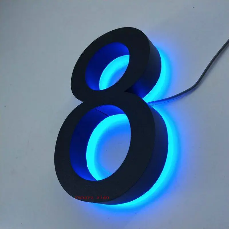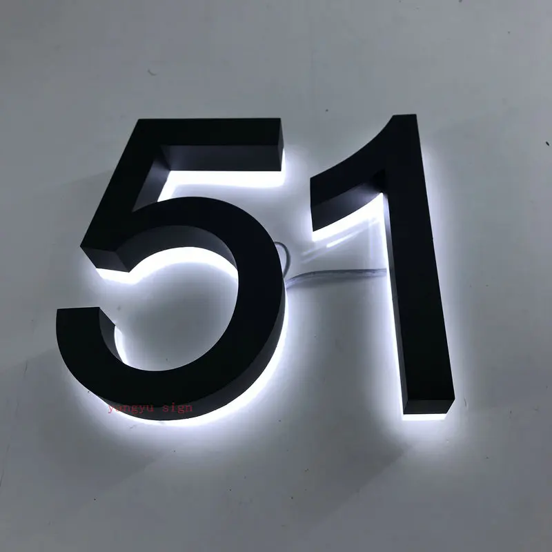 Outdoor waterproof garden backlit house number glowing metal letter signs stainless steel 3d led luminous numbers plate